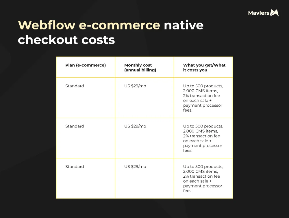 ~ If you need anything beyond basic checkout logic, e.g., custom payment gateway, subscriptions, complex shipping, or tax rules, Webflow’s native checkout hits its limits. Then you’re stuck with either workarounds or a platform migration.
