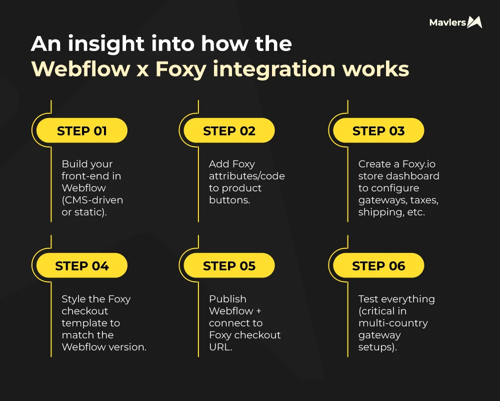 Developers love this because, first, it keeps Webflow light; second, you avoid Webflow’s e-commerce transaction fees; third, you get absolute freedom and can integrate ANY gateway Foxy supports.