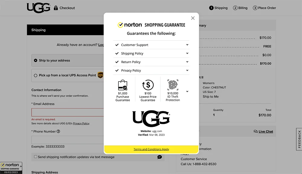 Placing a trust badge strategically can reassure customers that they can enjoy a low-risk, super-secure online shopping experience.